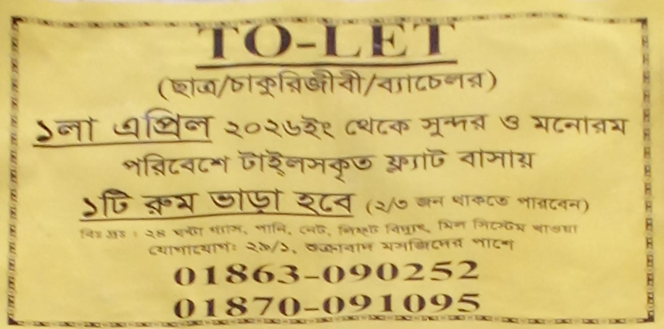 ছাত্র / চাকুরিজীবি / ব্যাচেলর