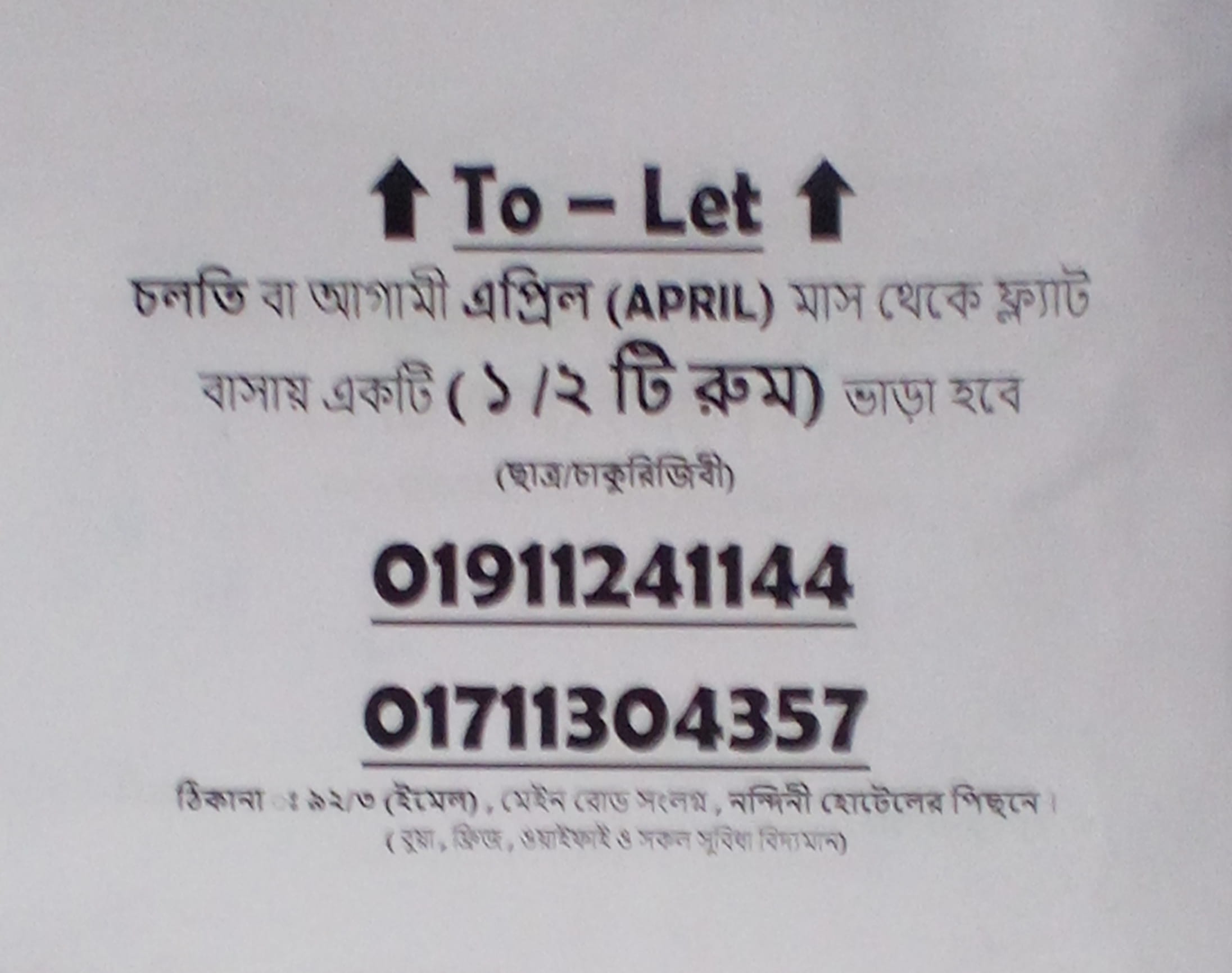 ফ্ল্যাট বাসায় ১/২ টি রুম ভাড়া হবে