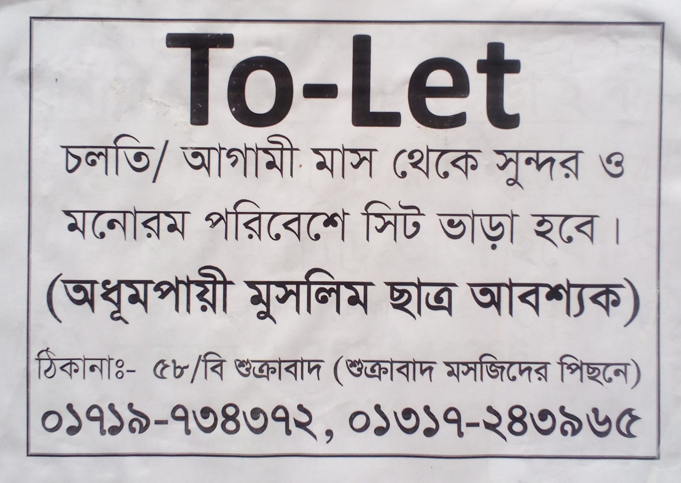 অধূমপায়ী মুসলিম ছাত্র আবশ্যক